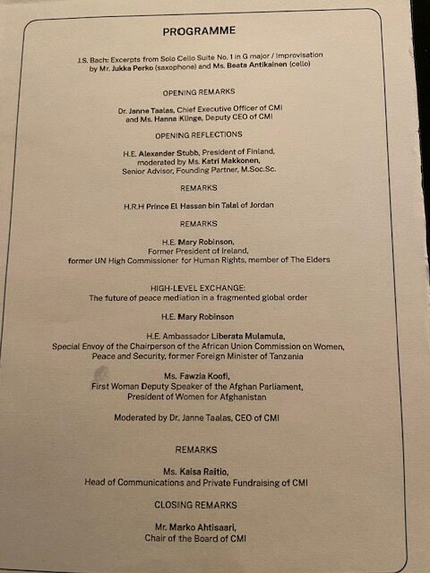 25-vuotias CMI on yksi maailman johtavista rauhanvälitystoimijoista. Lehtorit Eila Mikkonen ja Sole Pako saivat kutsun Finlandia-talon juhliin, koska syksyllä 2024 he osallistuivat opiskelijoiden ja oppilaiden kanssa CMI:n konfliktin ratkaisun työpajoihin sekä Sodankylän lukiossa että Tähtikunnan koulussa.