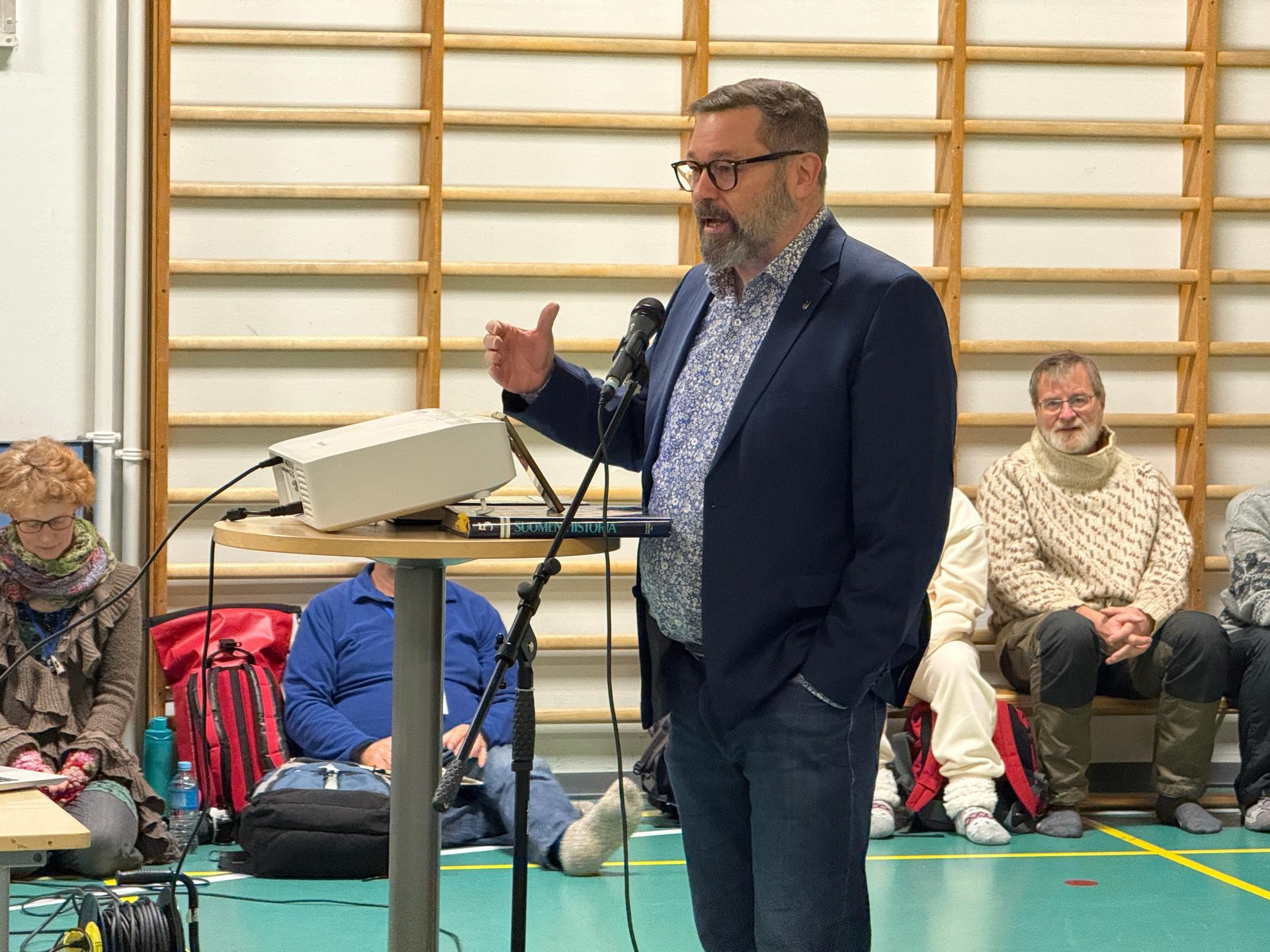 In the beginning of the conference, Mayor Jari Rantapelkonen is having a speech.
